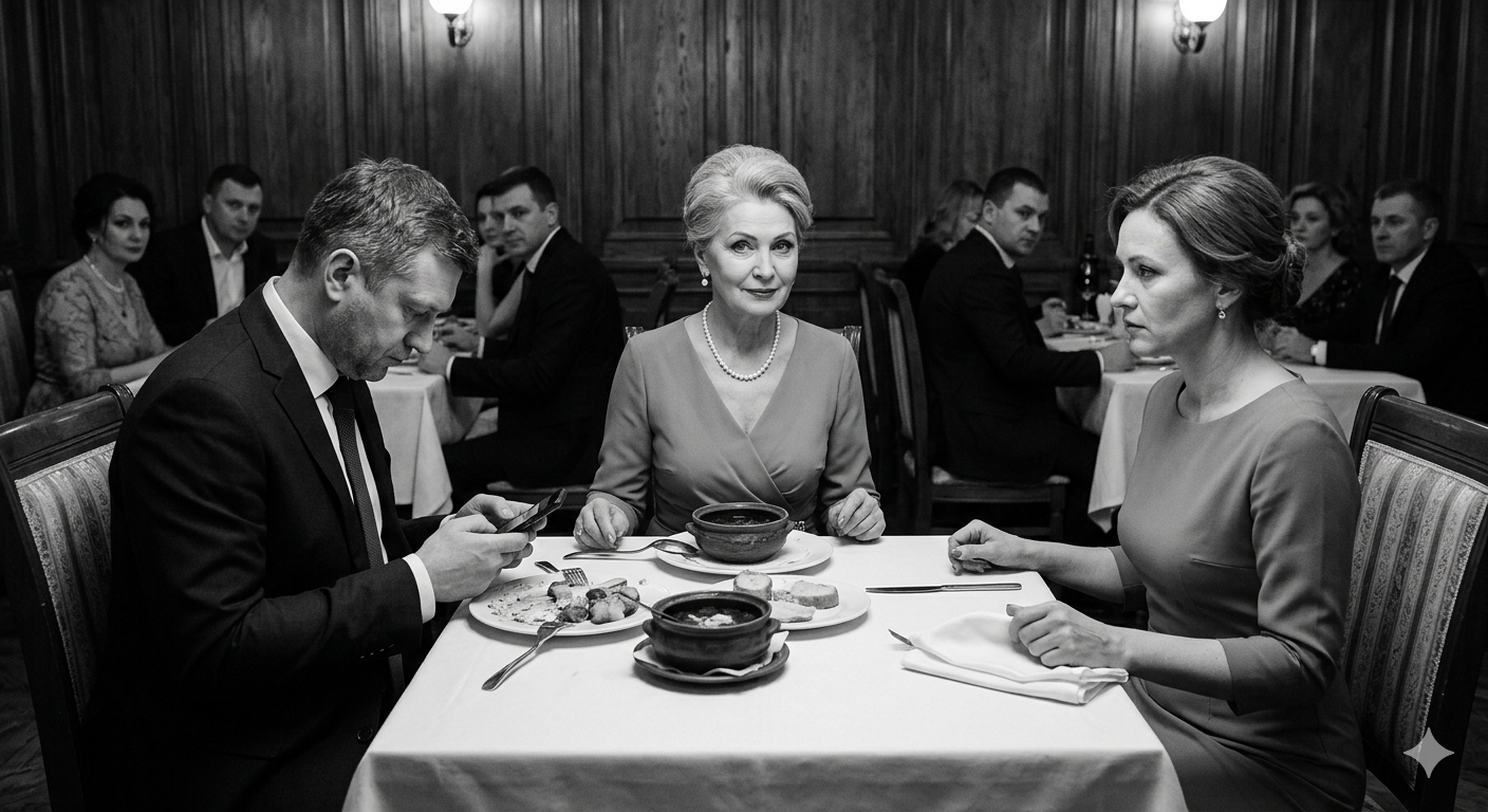 По залу пронесся шепот. Официанты замерли с подносами. Свекровь напряглась, но сохранила безупречную улыбку.