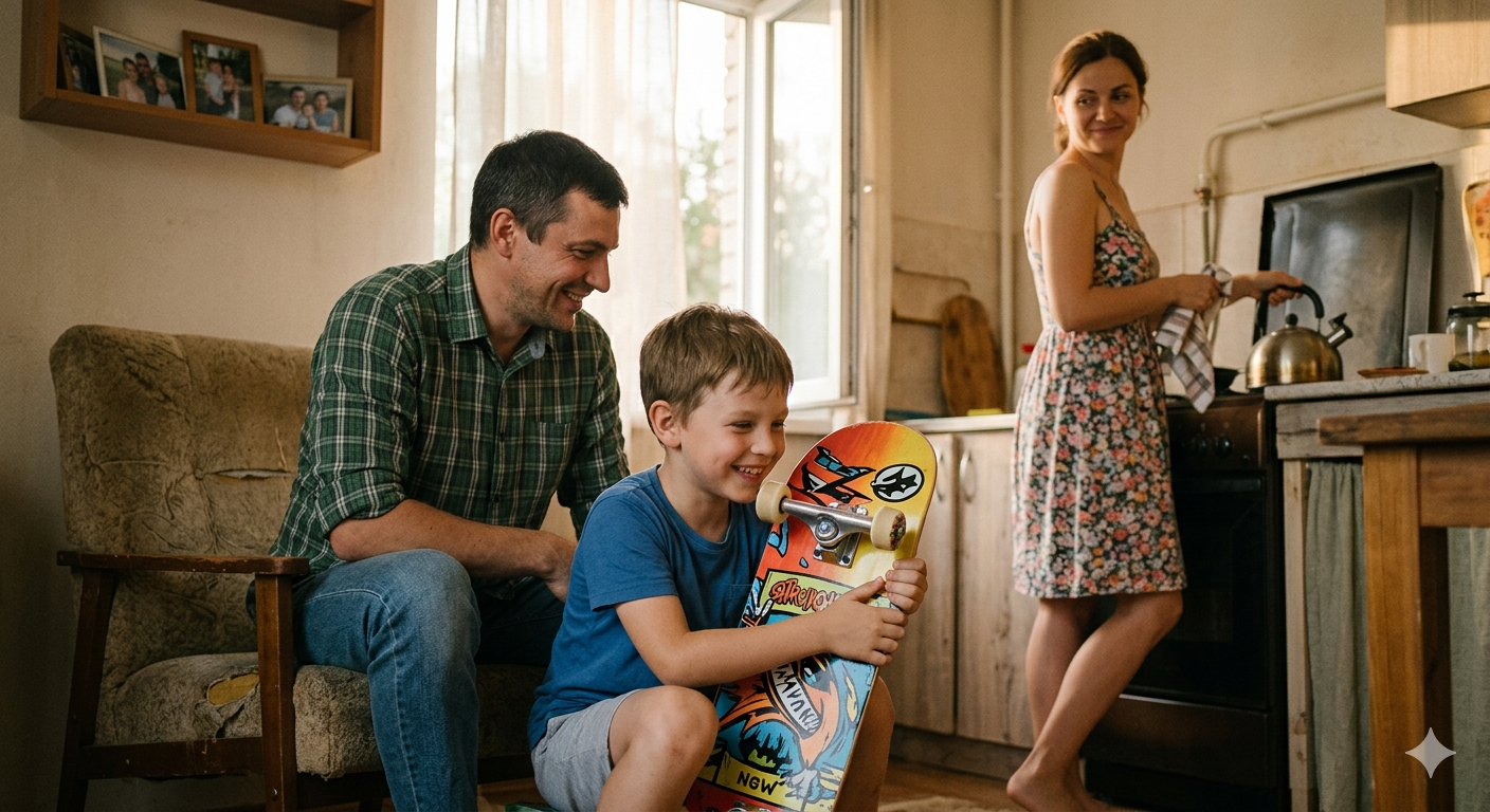 Сын и правда был такой счастливый, что никаких денег не жалко. Сын обнял Тимофея и сказал, что он – самый лучший папа. Схватил скейт и сразу побежал во двор, крикнув на ходу, что хочет опробовать подарок.