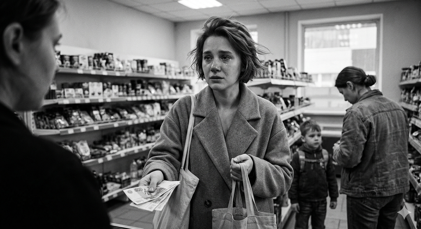 Кристина взяла с полки самое дешёвое молоко и творог. Потом вздохнула и положила творог обратно.