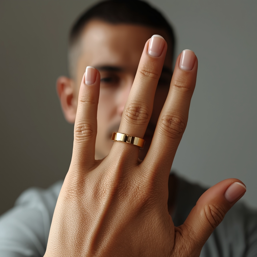 На раскрытой ладони мужчины лежало золотое кольцо.