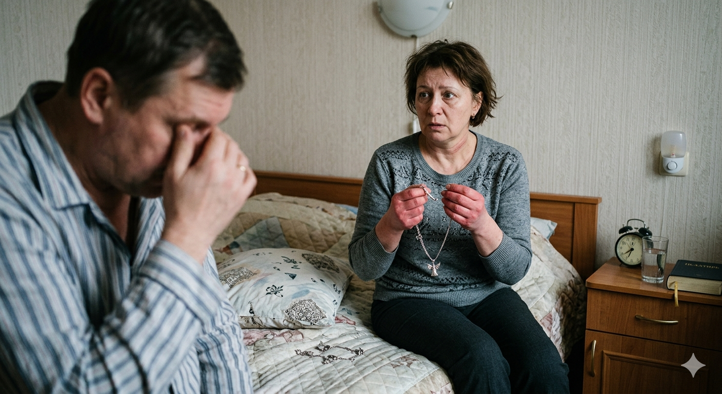 Тоня проснулась с дикой головной болью и с ощущением, что плечи ломит, будто она ночью мешки с картошкой таскала. Она села на кровати, потрогала шею. Мышцы затекли, как после тяжёлой работы. Муж, Виктор, проснулся, заворчал: «Чего вскочила? Спать давай, пять утра ещё».